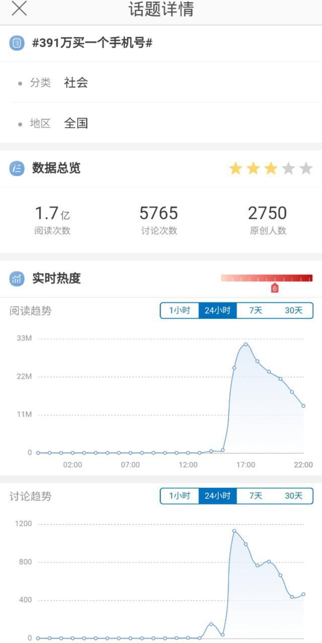 这几天,微博的一条热搜引得网友们议论纷纷,那就是有人在网上拍了一个391万的宝贝,而这个宝贝,竟然是一个手机号码,这让不少网友匪夷所思,网友们纷纷表示,这个年头,朋友之间都是用QQ、微信等社交软件进行联系,而会打电话给自己的基本上是快递小哥叫拿快递或者是外卖小哥叫拿外卖,基本上不会有人打电话给自己,而买这个手机号码的意义何在?